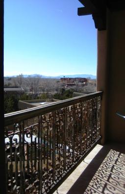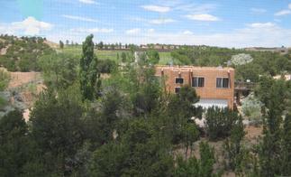Perched on a secluded hilltop between Old Taos Highway and De Vargas Mall, with the Plaza and downtown Santa Fe a stroll away, this sophisticated and very private c.1700 sq ft guest house offers two bedrooms+third bed or office, three ensuite ¾ baths, two living areas, portal, eat-in kitchen (granite/stainless), one car garage, refrigerated ac, plus use of a large dining/entertaining patio w/gazebo and fountain.